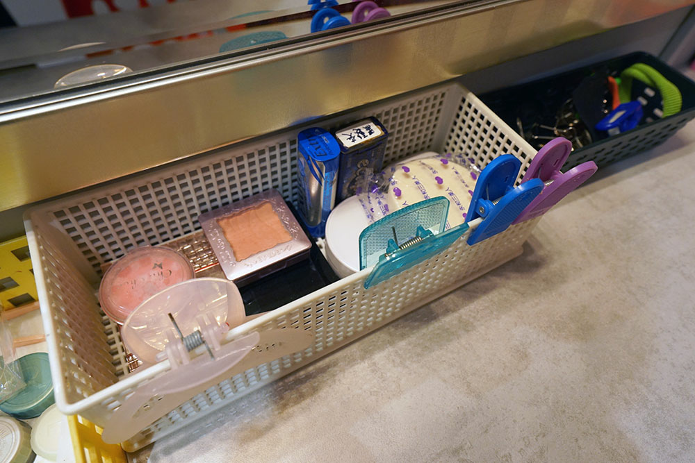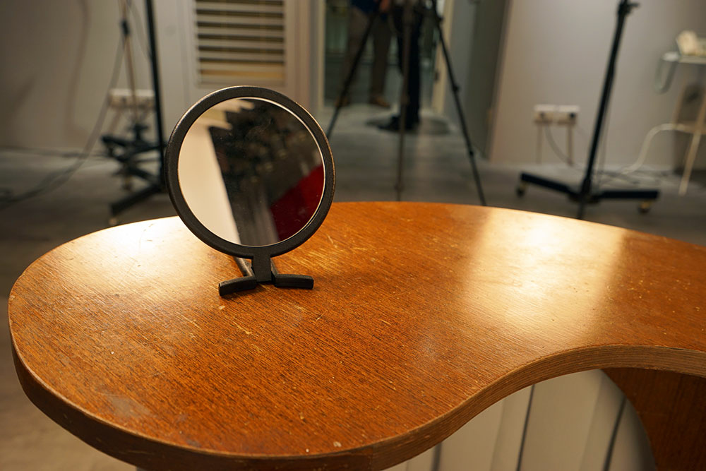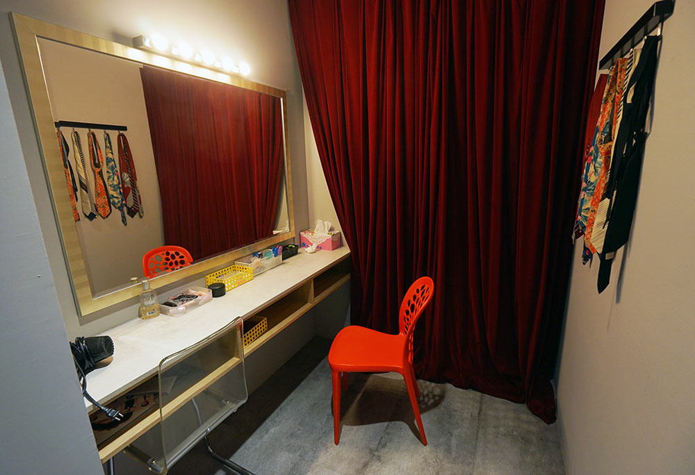 ☟要進攝影棚前,我們先到梳化室打理一番,這裡的梳化用品蠻齊全的耶!女生不用擔心沒帶自己的化妝品,或吹風機等等,男生也有領帶可以搭配,非常貼心。