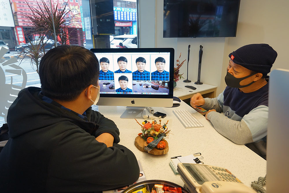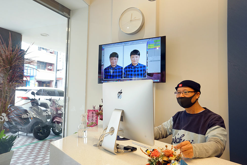 ☟大明提供證件、學士、全家福等等照片拍攝,快照的方式可以讓我們很快拿到,另外還有一個老照片翻修,幫破損、泛黃等等照片,修復回數位完整照片!