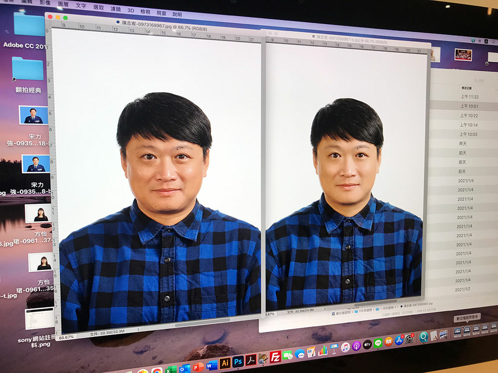 ☟左邊是第一次修圖,右邊是第二次修圖,短短時間,老闆就幫我把證件照修完啦!!真的要非常豐富的經驗,才能夠這麼快速滿足我們的需求,右邊的對你看起來膚質更好,臉型剛剛好,又不會修得太假,整體看起來年輕幾歲又不會太過~真的讓我很滿意!
