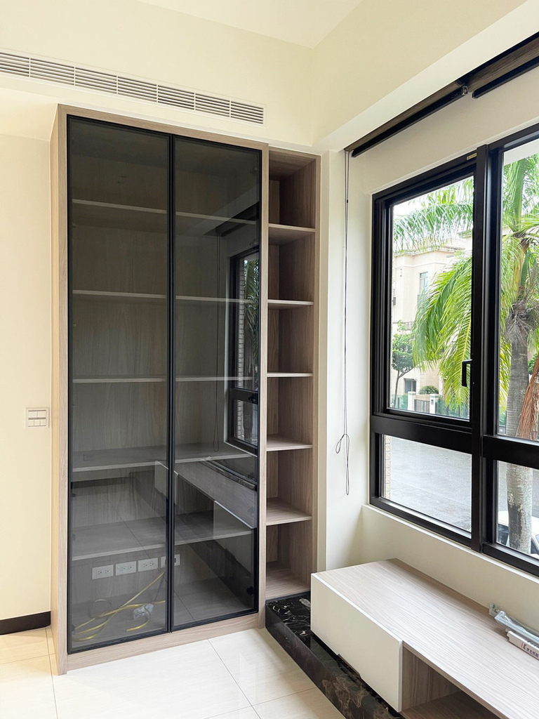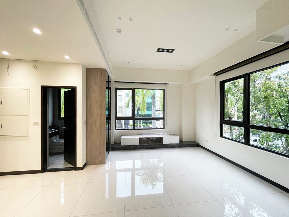 客廳清完後,最明顯的就是地磚跟玻璃。地面沒有施工後常見的一層灰,瓷磚亮度回來,走路也不會有沙沙感。窗戶、氣密窗也都沒有水痕,拍照還得拖鞋避免踩髒,這就代表現場真的被整理到可以直接放家具的程度。