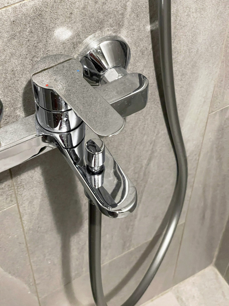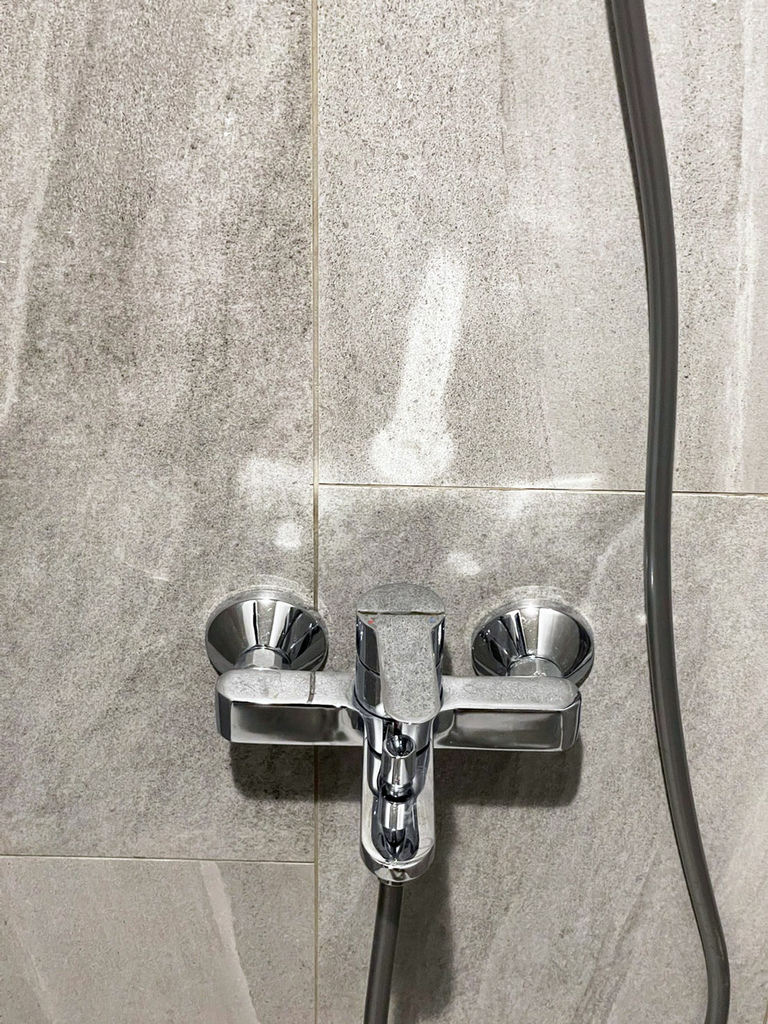 衛浴是比較容易留下粉塵的地方,因為裝潢時磁磚、五金都會有資材切割的粉。清潔完後的馬桶、磁磚、地面都沒有粉點,蓮蓬頭也被擦到發亮,這就表示他們不是只噴清潔劑,而是有實際把水痕擦掉。