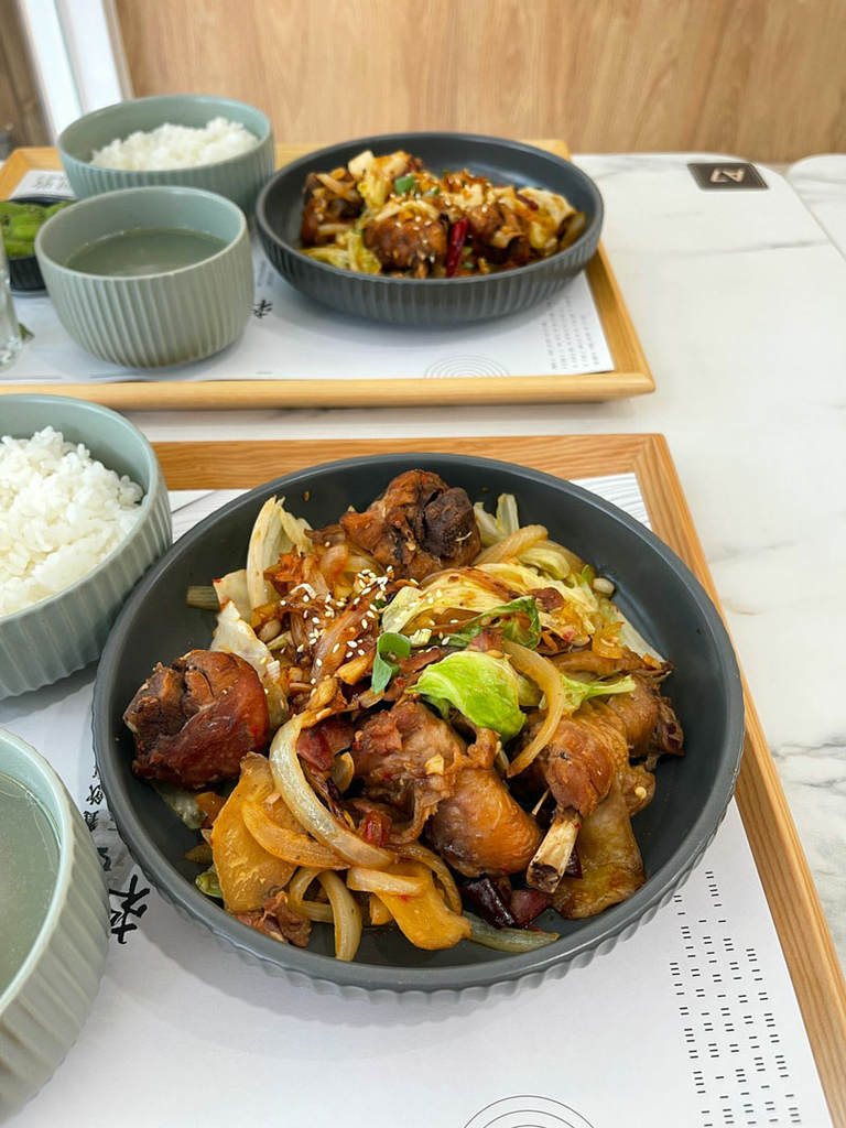 ▽我們吃四川椒麻乾鍋、雲南椒麻乾鍋,每一個套餐都有主菜、小菜、白飯、湯品、果醋。