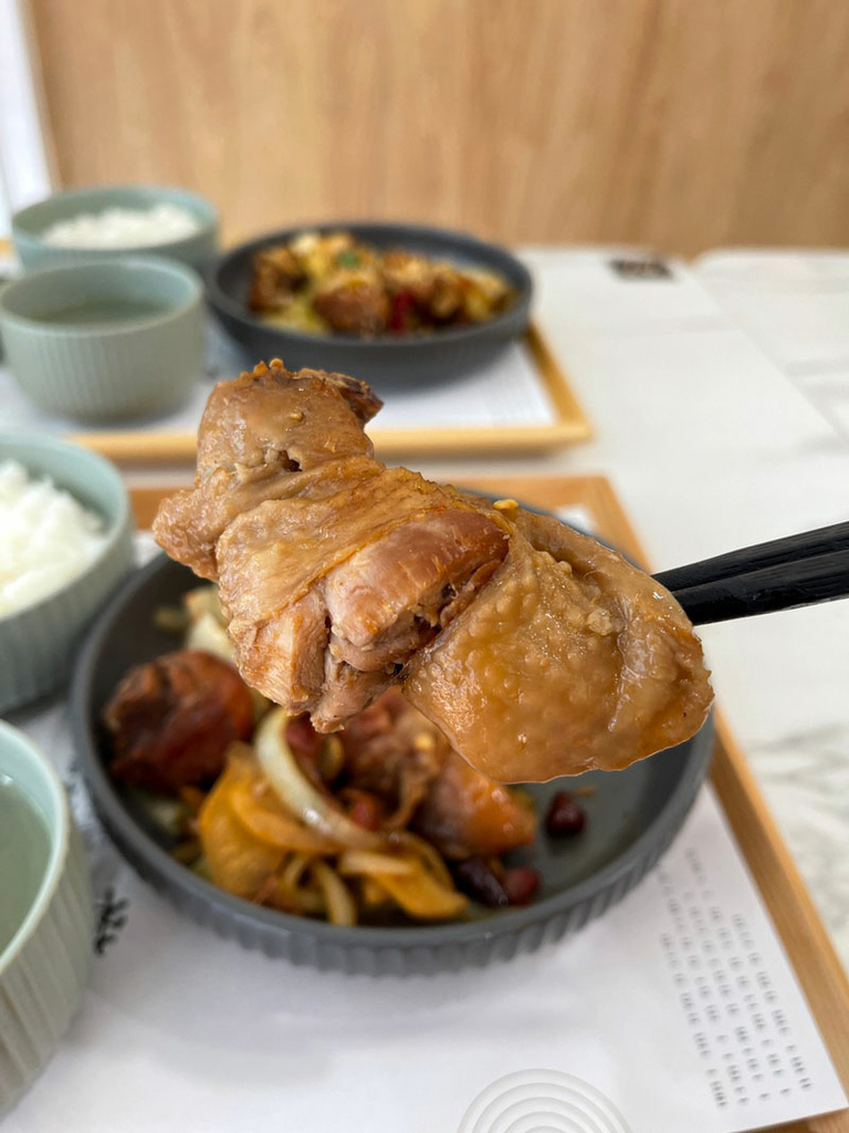 ▽雞肉很大塊,而且都是使用雞腿肉,肉質很Q嫩,簡單一咬,便骨肉分離。