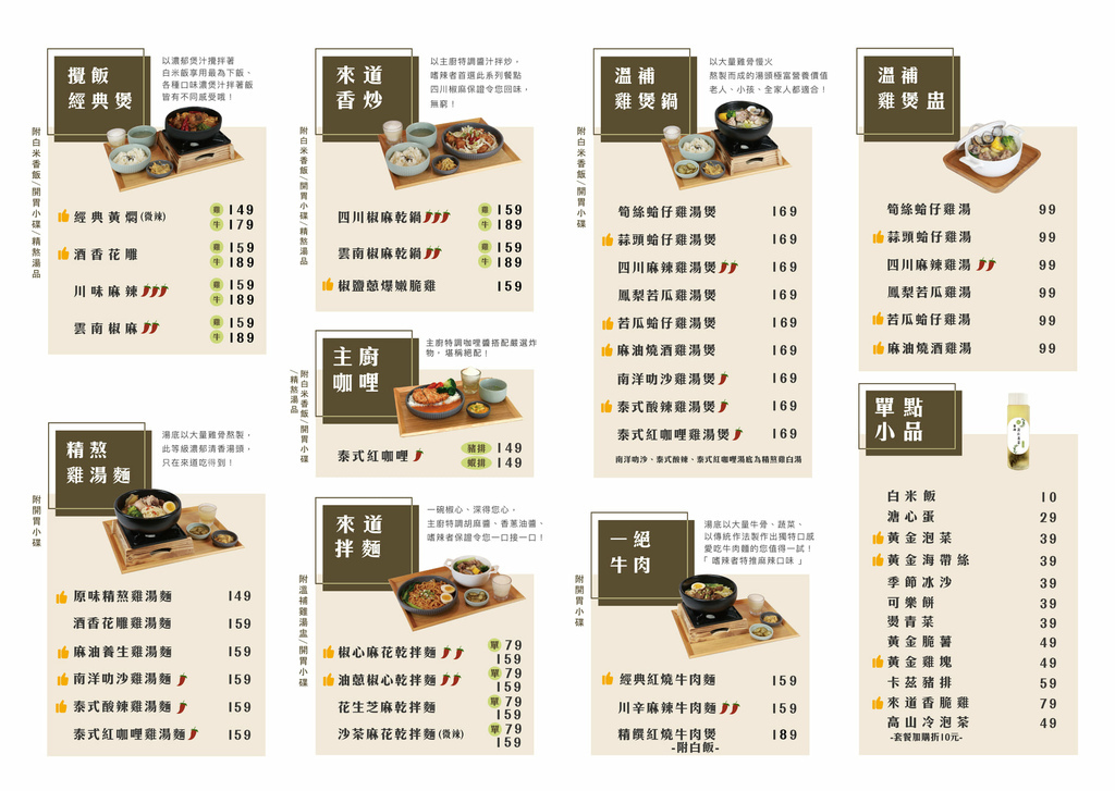 ▽菜單給大家參考,從黃燜雞經典煲、香炒乾鍋等等,滿足不同口味的人,本身愛吃辣的我,這次點:四川椒麻乾鍋、雲南椒麻乾鍋、南洋叻沙雞湯煲、泰式紅咖哩雞湯煲。這幾道比較特別的套餐!