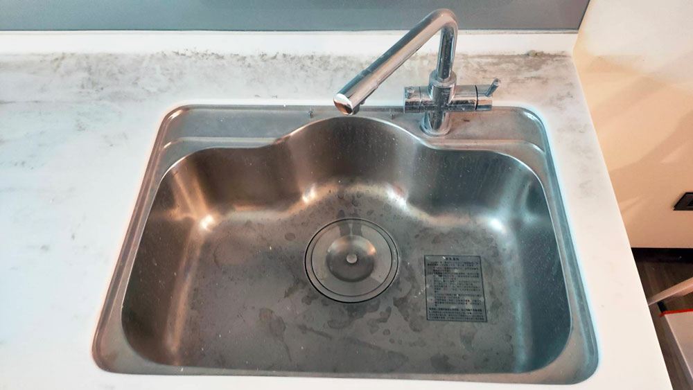 ▼瓦斯爐與流理臺上佈滿厚厚的灰塵......