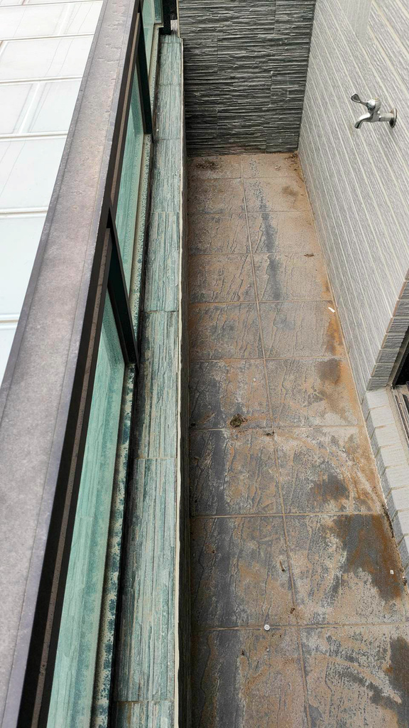 ▼外面的小陽台雖沒動工,但畢竟屋子也是轉手買來的,長年下來所積下的灰也是厚厚一層呢!