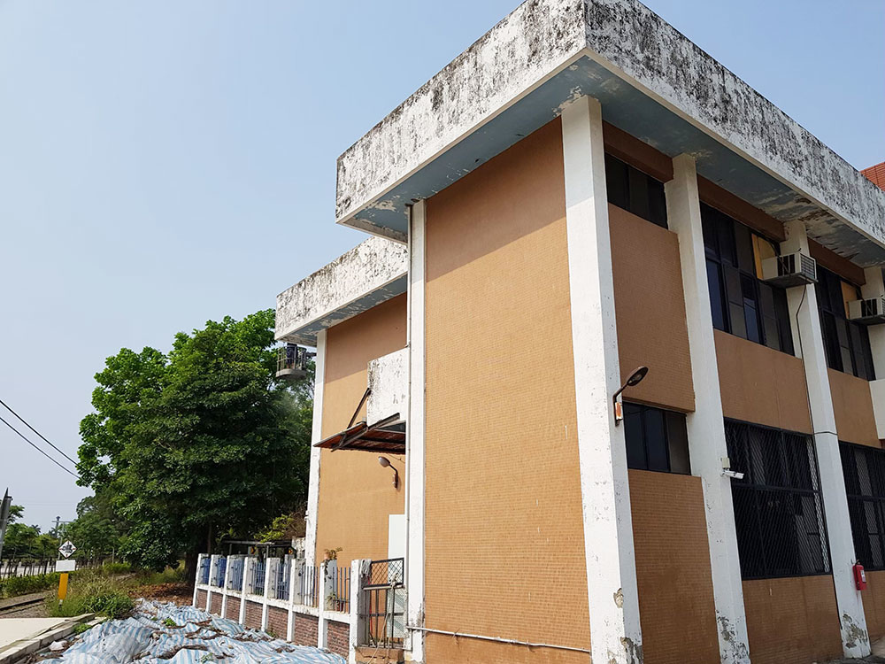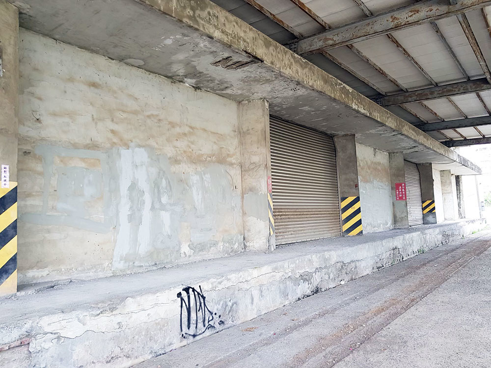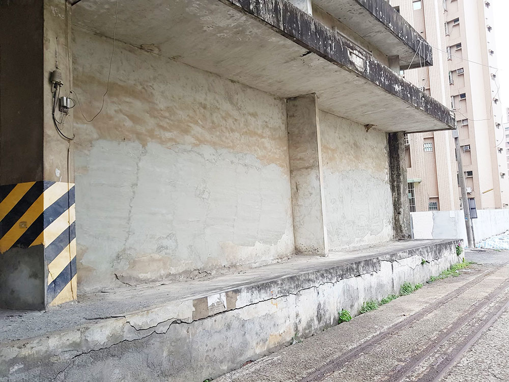 建築物外牆的部分主要是白色部分斑駁、老舊!