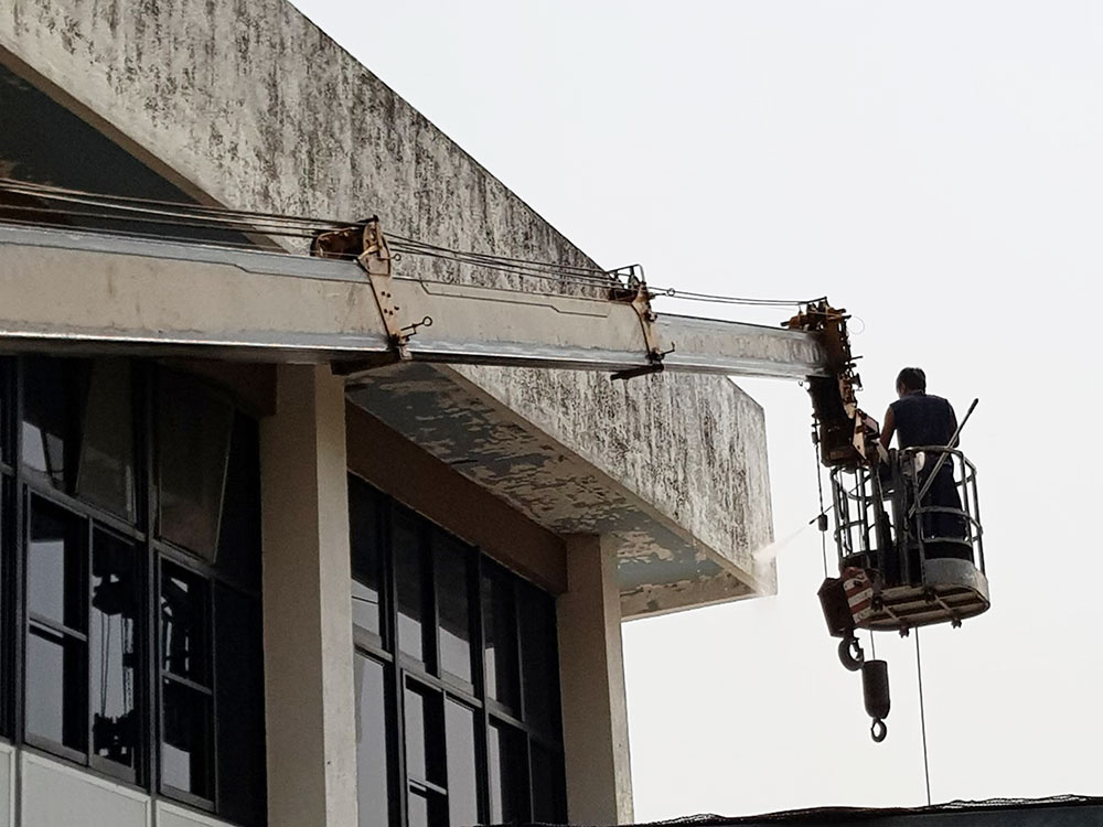 清洗後,上兩層防水白色漆,一道一道塗刷,每一道都要均勻,這時就是考驗師傅專業的地方!