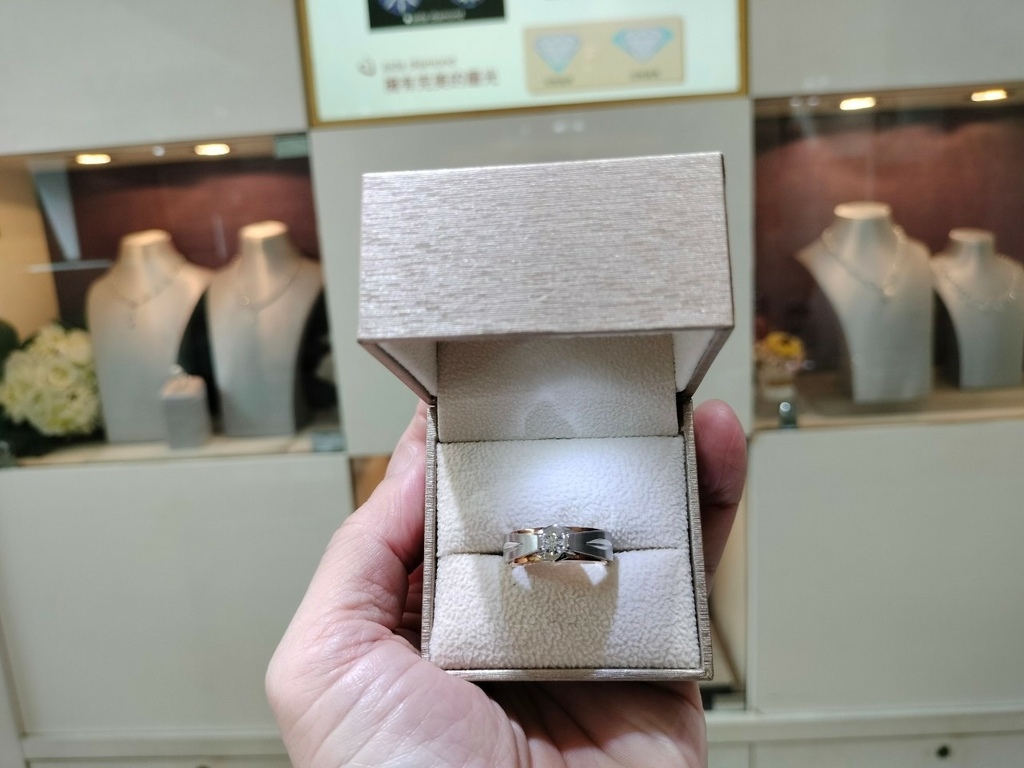 大約一個月後,我幫弟弟去拿完成的客製化鑽戒。成品真的很有他們的風格,看著這枚象徵承諾的戒指,心裡滿滿祝福。