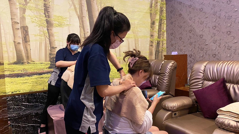 ▽我們做足浴和肩頸按摩。邊泡腳邊按摩肩頸,師傅的力道拿捏很剛好,如果大小需要調整可以直接跟師傅們說。運用手勢、角度的變換,還有力道的拿捏,讓氣血、筋絡通暢,超級有感!