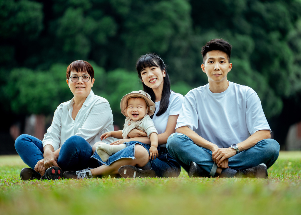 這次拍攝還邀請到婆婆從澳門飛來台灣一起入鏡,變成三代同堂版本的家庭寫真。地點選在他們熟悉的校園裡,服裝也走輕鬆路線,畫面看起來既自然又有儀式感,這就是很多人想拍全家福卻一直拖的原因──要拍就希望是「真正有意義的一次」。