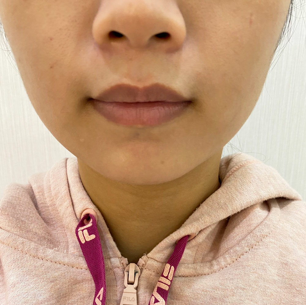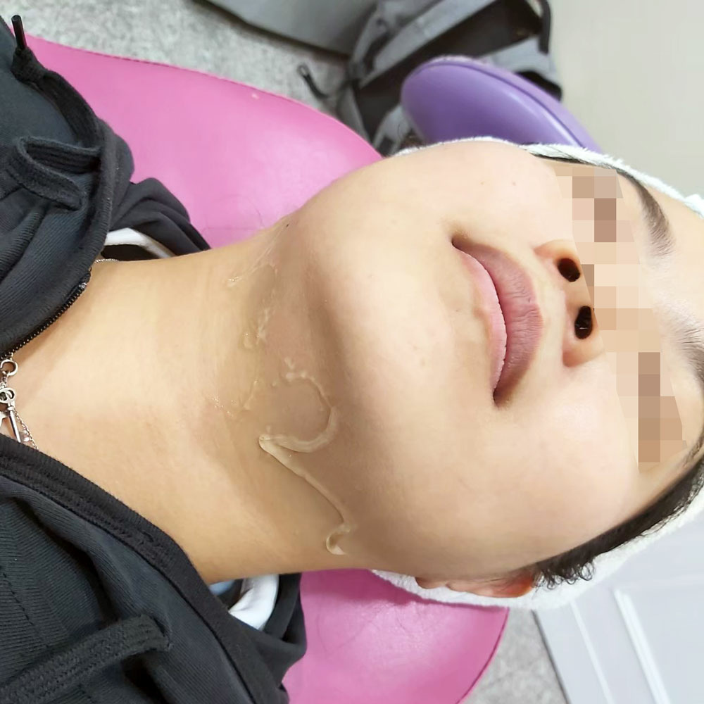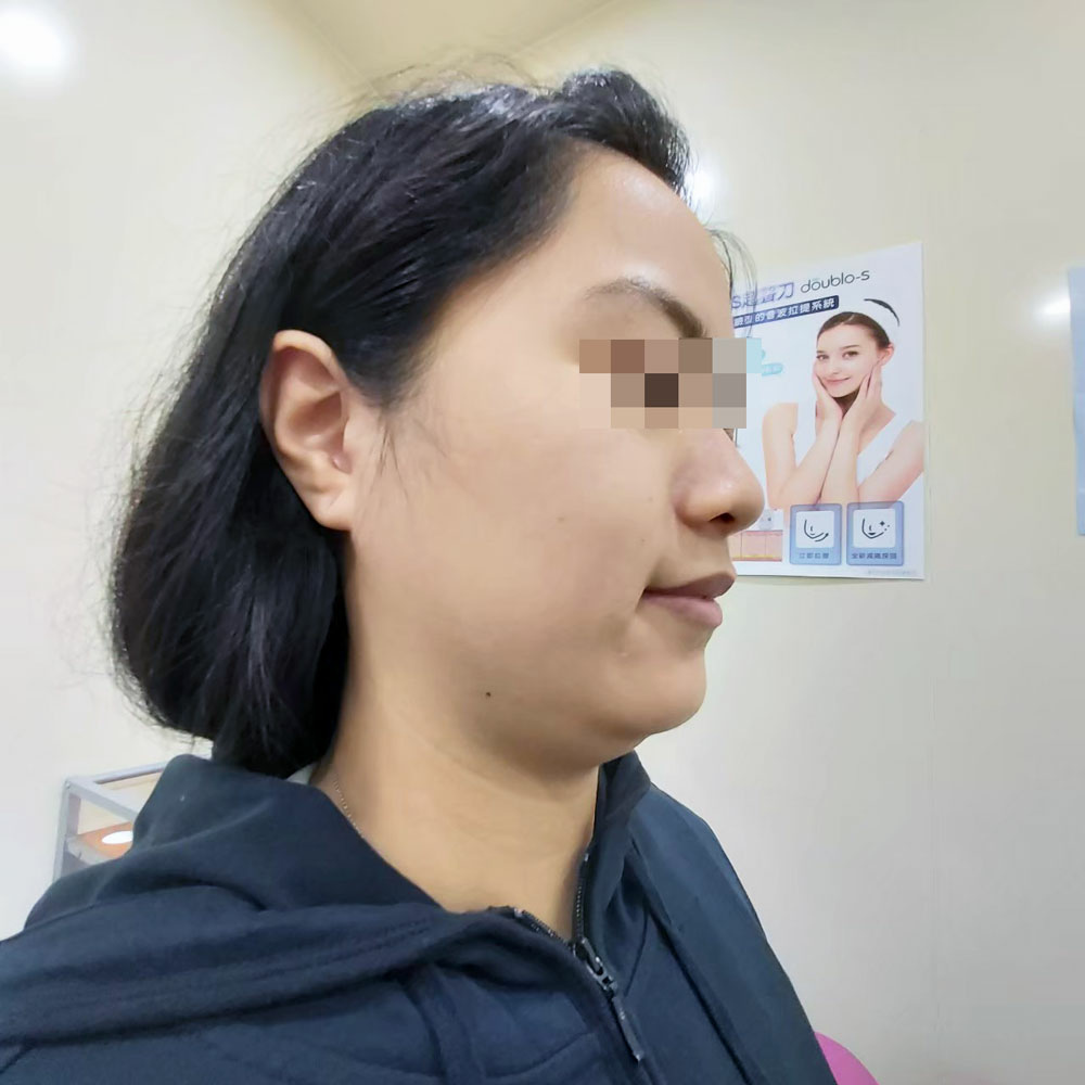 聽完劉醫師解說,妹妹當然很心動。立馬又加買了音波的療程。而且妺妹又想快一點看到效果,當天我們就安排了治療。下面這些照片是妹妹施打前的雙下巴。看得出來脂肪還蠻扎實的呢XD
