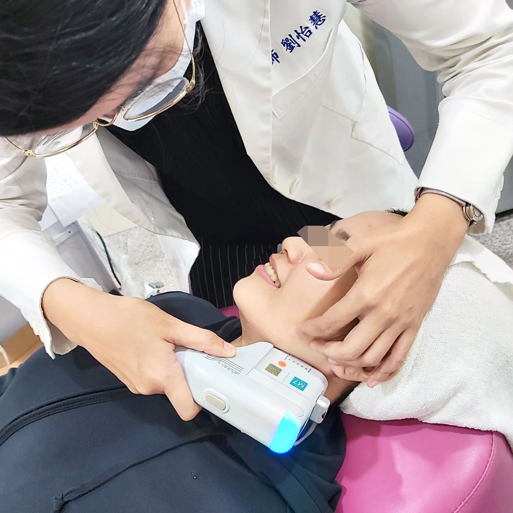 ☟上網一查,網友都推薦我們家附近的『劉怡慧皮膚科診所』,我就陪著妹妹過去,幫她壯膽。劉醫師問診後,確認妹妹的體質適合施打消脂針,但是捏起來皮膚有一點鬆弛。劉醫師說,如果皮膚已經被撐鬆了,打了消脂針可能也是鬆垮的不好看。所以劉醫師建議要搭配音波治療再加上消脂針注射。劉醫師說音波可以讓表皮緊實有彈性。消脂針需要一兩個月讓脂肪體積消除減少。剛好這一兩個月音波也刺激了表皮膠原蛋白。最後達到的效果,是消除了內部的脂肪,而且皮膚緊實。就可以看到美美的下巴輪廓了~