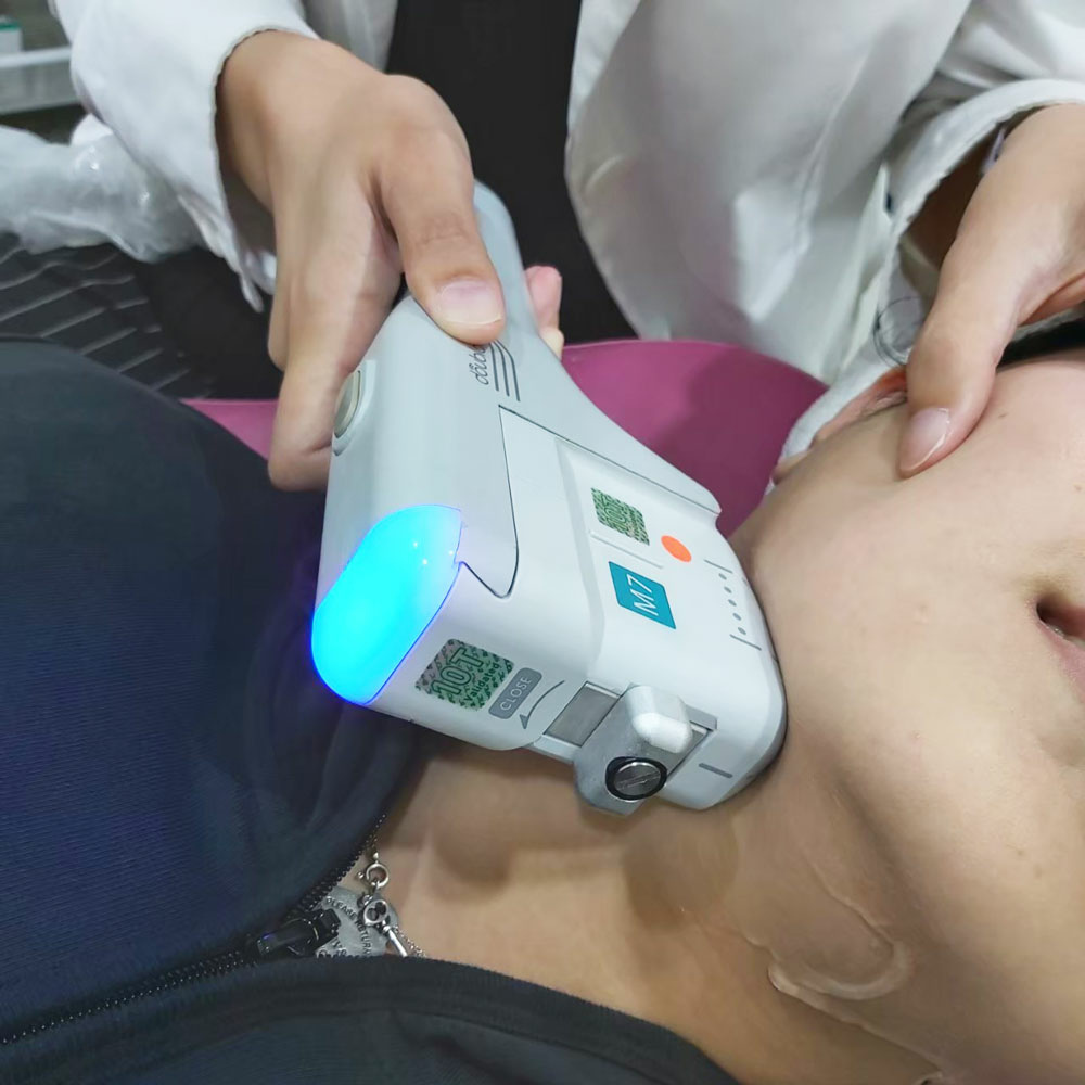 ☟音波拉提,是使用高頻穿透過皮膚,至肌肉筋膜組織SMAS上,高頻震盪組織所發出的熱能凝聚聚焦在一個點上,使體內的筋膜層產生熱凝固來拉提,達到拉皮的效果。可以精準的改善皮下結構,讓老化的膠原蛋白收縮、刺激、增生再重組。讓皮膚從底層恢復肌膚彈性。