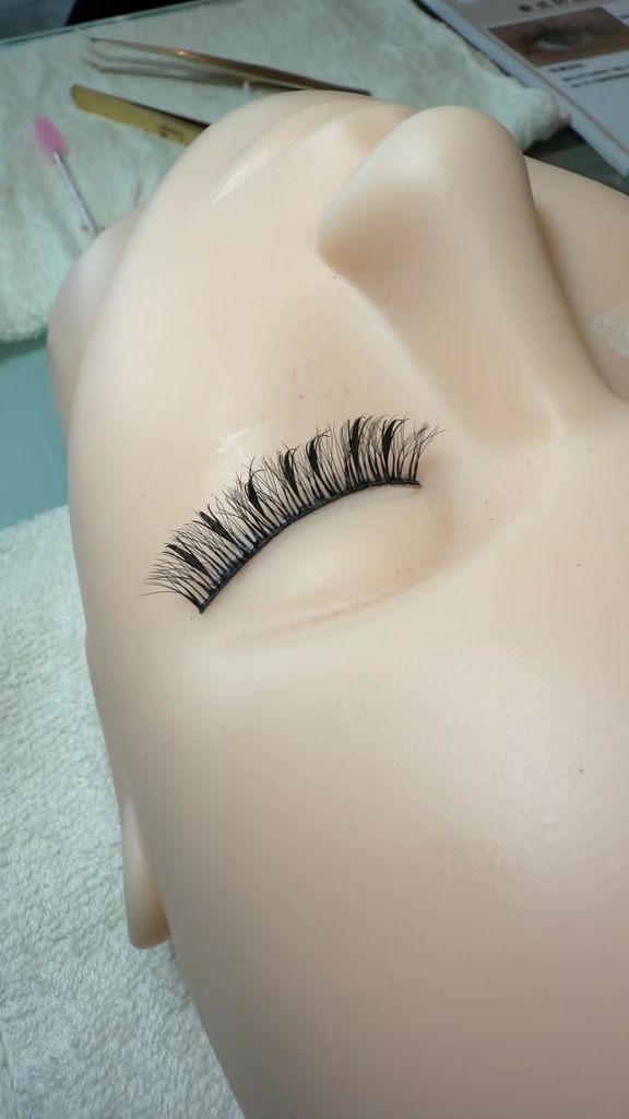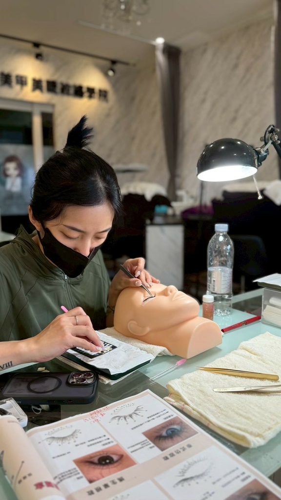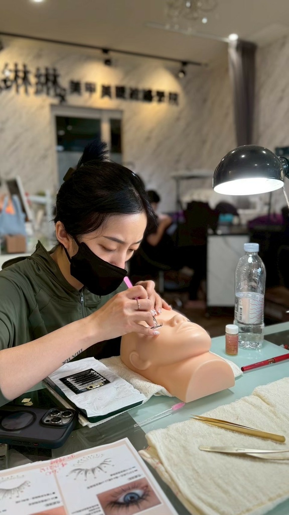 ▼美睫課程安排也很有系統,從假人頭開始,確保手法穩定後,才進階到真人模特兒實戰練習。